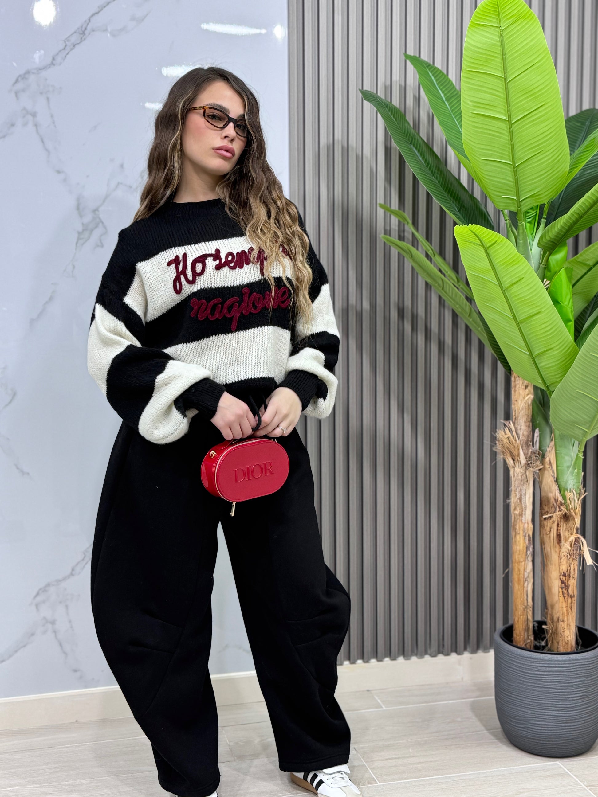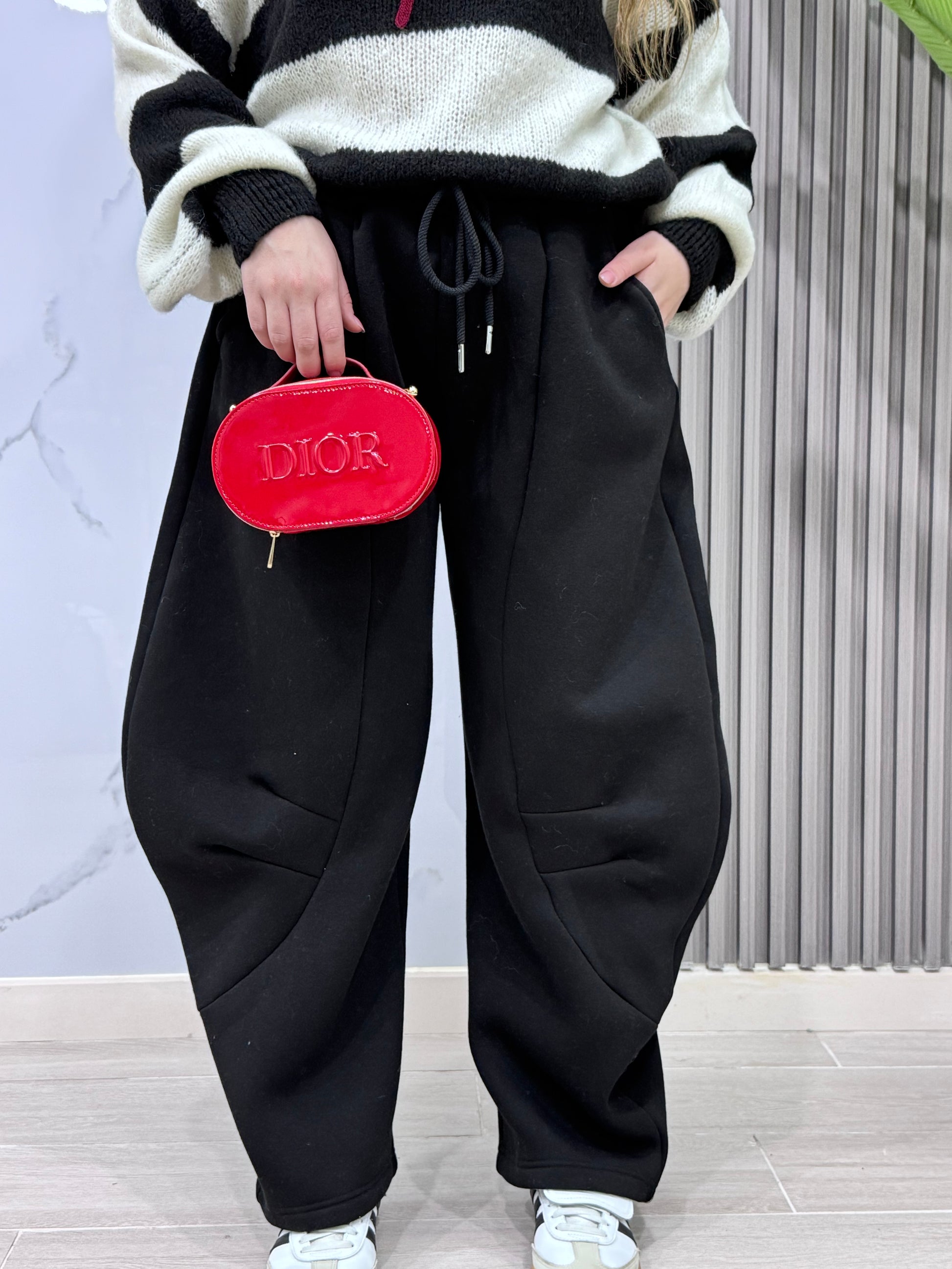 Il pantalone tuta balloon che stavi aspettando! Morbido, avvolgente e incredibilmente chic, questo pezzo è la risposta a chi vuole sentirsi a proprio agio senza sacrificare lo stile. La silhouette balloon crea un effetto sofisticato e moderno, perfetto per un look rilassato ma curato. Indossalo per una giornata pigra, un'uscita casual o semplicemente quando vuoi prioritizzare il benessere senza rinunciare all'eleganza. Ogni ragazza merita un pantalone così: comodo, versatile e sempre di tendenza. Aggiungi questo capo al tuo guardaroba e scopri come una semplice tuta può diventare il tuo nuovo outfit preferito!